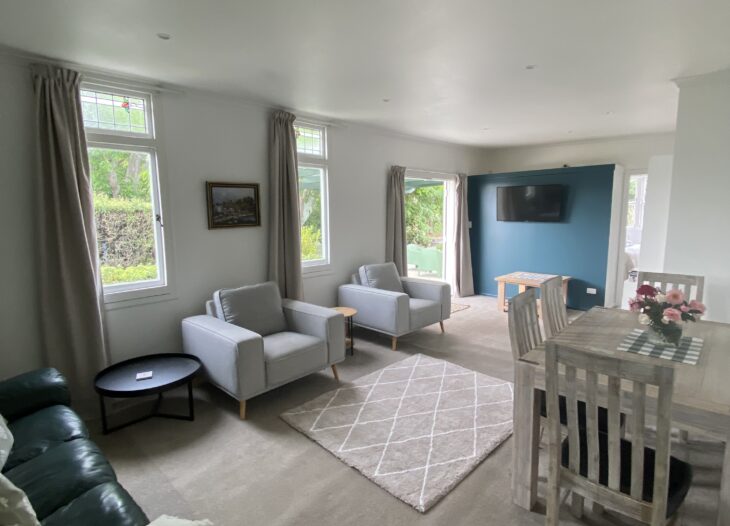 Set on expansive, tranquil grounds with a vast lawn, mature trees and a quiet rural atmosphere, Lavender Cottage is an elegantly renovated three-bedroom retreat designed for comfort and relaxation. The cottage features a comfortable living area, well-equipped kitchenette, TV, bathroom and full laundry facilities.